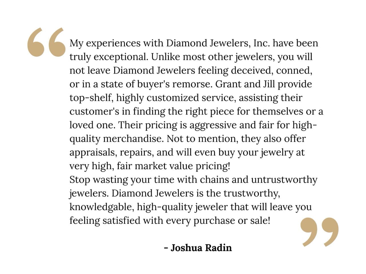 Diamond Jewelers, Inc. builds on over 45 years of professional expertise, blending a legacy of craftsmanship with a passion for your satisfaction.